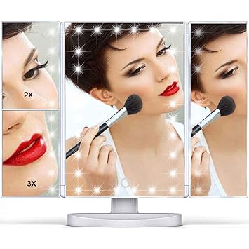 Trifold Led Lighted Makeup Vanity Mirror With 1x2x3x