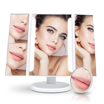 Makeup Vanity Mirror Led Tri Fold 1 X 2x 3x Magnification Sections Touch Screen Light Control 180 Free