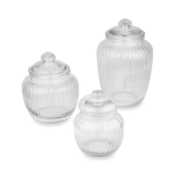 Idesign Interdesign York Fluted Glass Vanity Canister Jars For Cotton Balls Swabs Cosmetic Pads Set Of 3 Clear From Amazon Martha Stewart