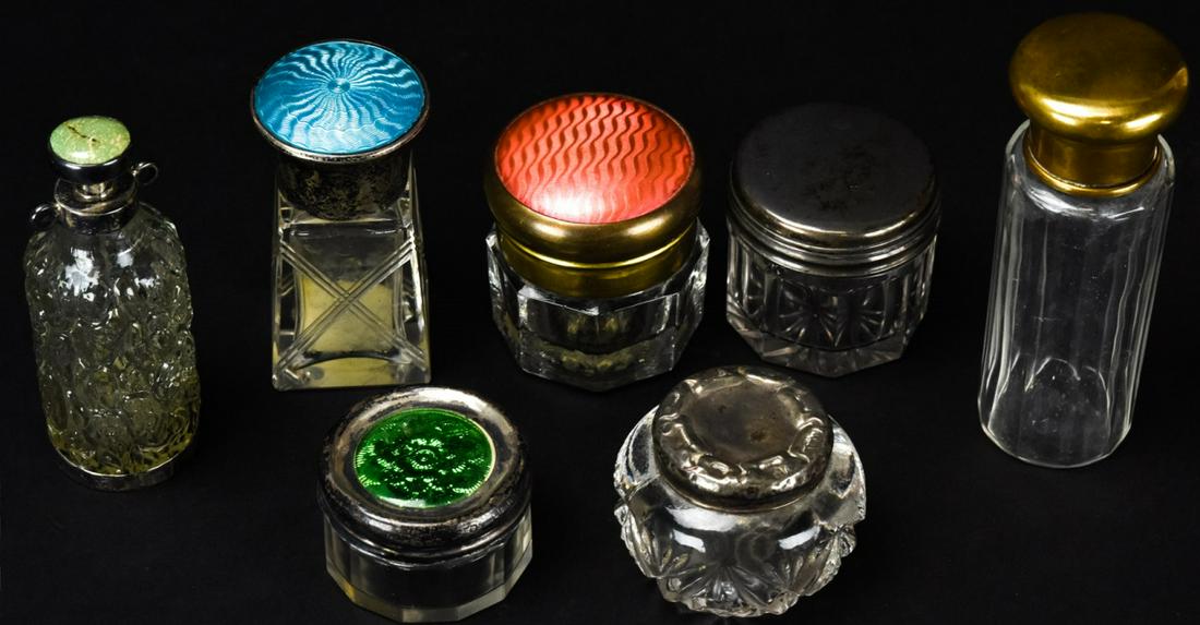 Mixed Solid Silver Lid Glass Vanity Jars Pots Glass Perfume