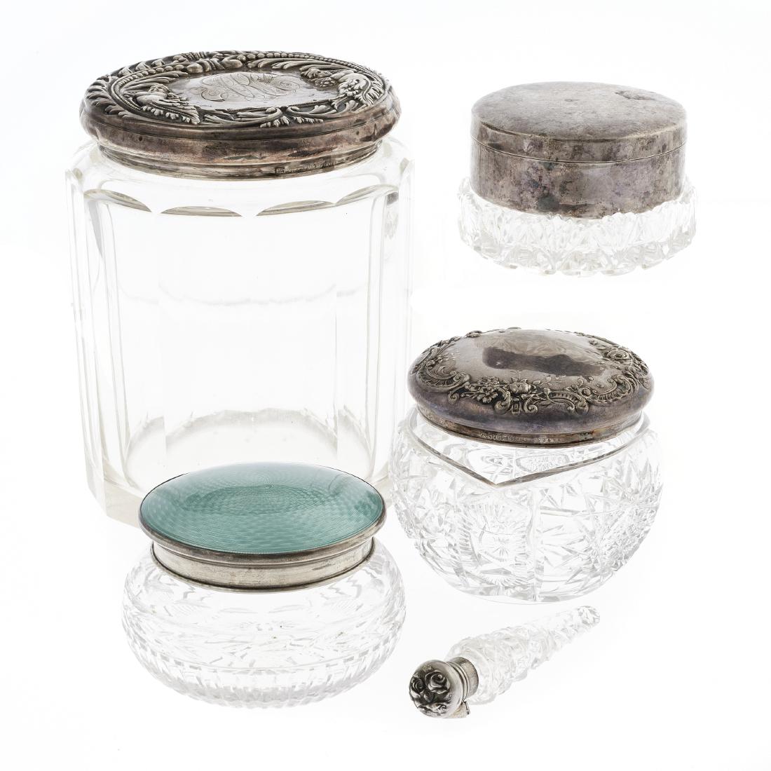 Lot Art Sterling Lidded Glass Vanity Jars Featuring