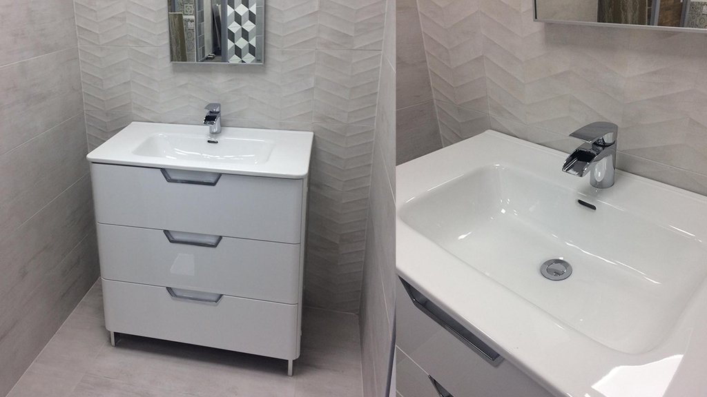 White Gloss Bathroom Vanity Unit With Ceramic Basin Tap