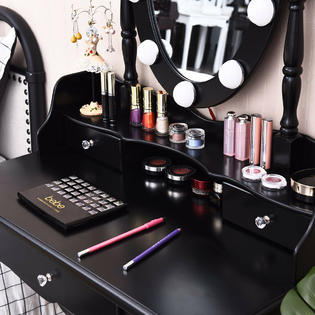 Costway Black Makeup Vanity Dressing Table Set W 10 Dimmable